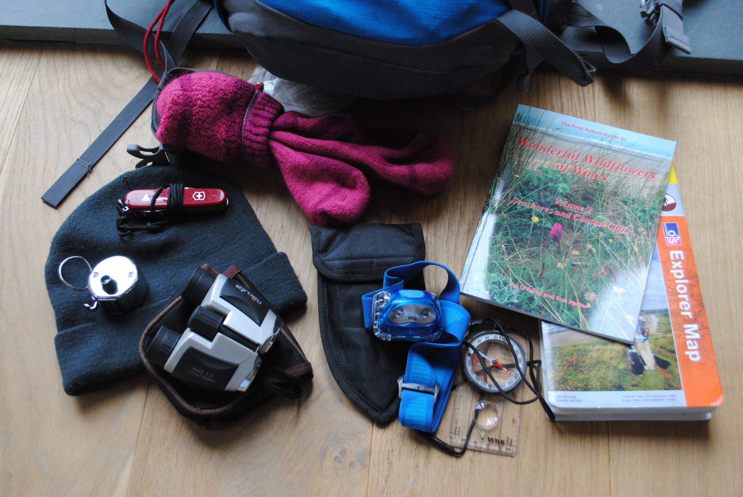 And I also had a mobile phone, the (small) binoculars and my (not so small) camera. Oh and I packed a small book on coastal birds and Coastal Flowers. (For further information on what to carry see my blog dated 15 May 2015 Top Ten Spares and repairs to Carry with You)